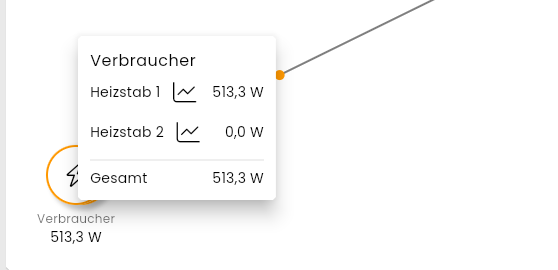 Mit einem Klick auf eine Gruppe oder ein einzelnes Gerät können Detailinformationen abgerufen werden. Dazu gehört zum einen die Aufzählung der einzelnen Geräte einer Gruppe. Darüber hinaus können geloggte Werte abgefragt werden, sodass Sie den Verlauf der Energieflüsse nachvollziehen können.