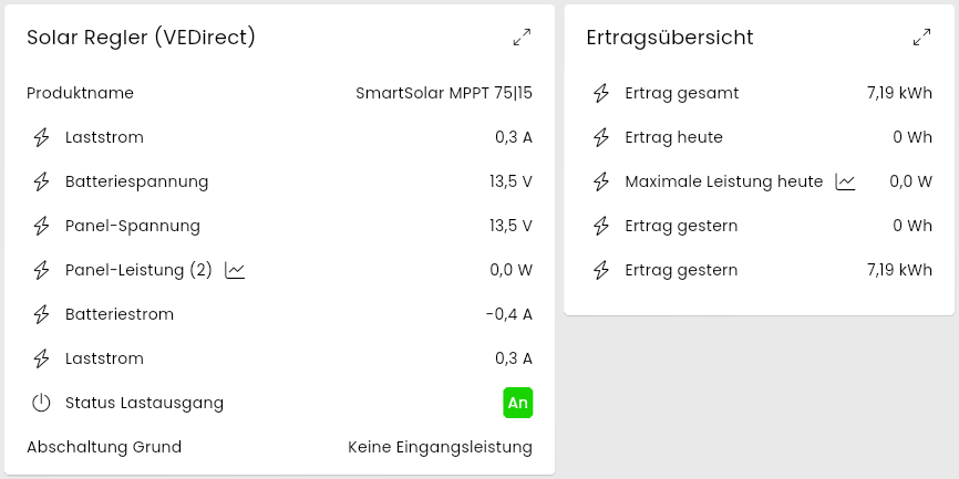 Ein Teltonika RUTX inkl. passender Antenne stellt die Grundlage der Installation, die mit nur 0,2A Last bei 12V eine sehr geringen Leistungsbedarf ausweist. Der Router liefert die LTE Konnektivität, um das Wohnmobil jederzeit zu erreichen. Zusätzlich wurden ein Victron MPPT für die PV-Anlage und ein Raspberry Pico für die Integration der Truma Heizung integriert. Ein Shelly übernimmt die Aufgabe der Lichtsteuerung.