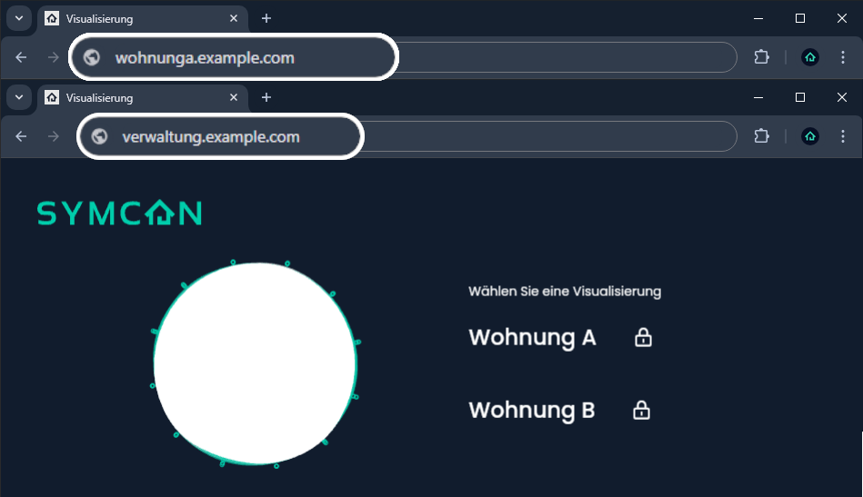 If you are using an extensive project for an apartment building, each resident should still have their own access to their apartment. This can be implemented conveniently thanks to virtual hosts. Each resident receives their own URL, which opens their visualization directly instead of having to laboriously search for it from a long list. For you as the administrator, everything remains one system and can be easily maintained.
