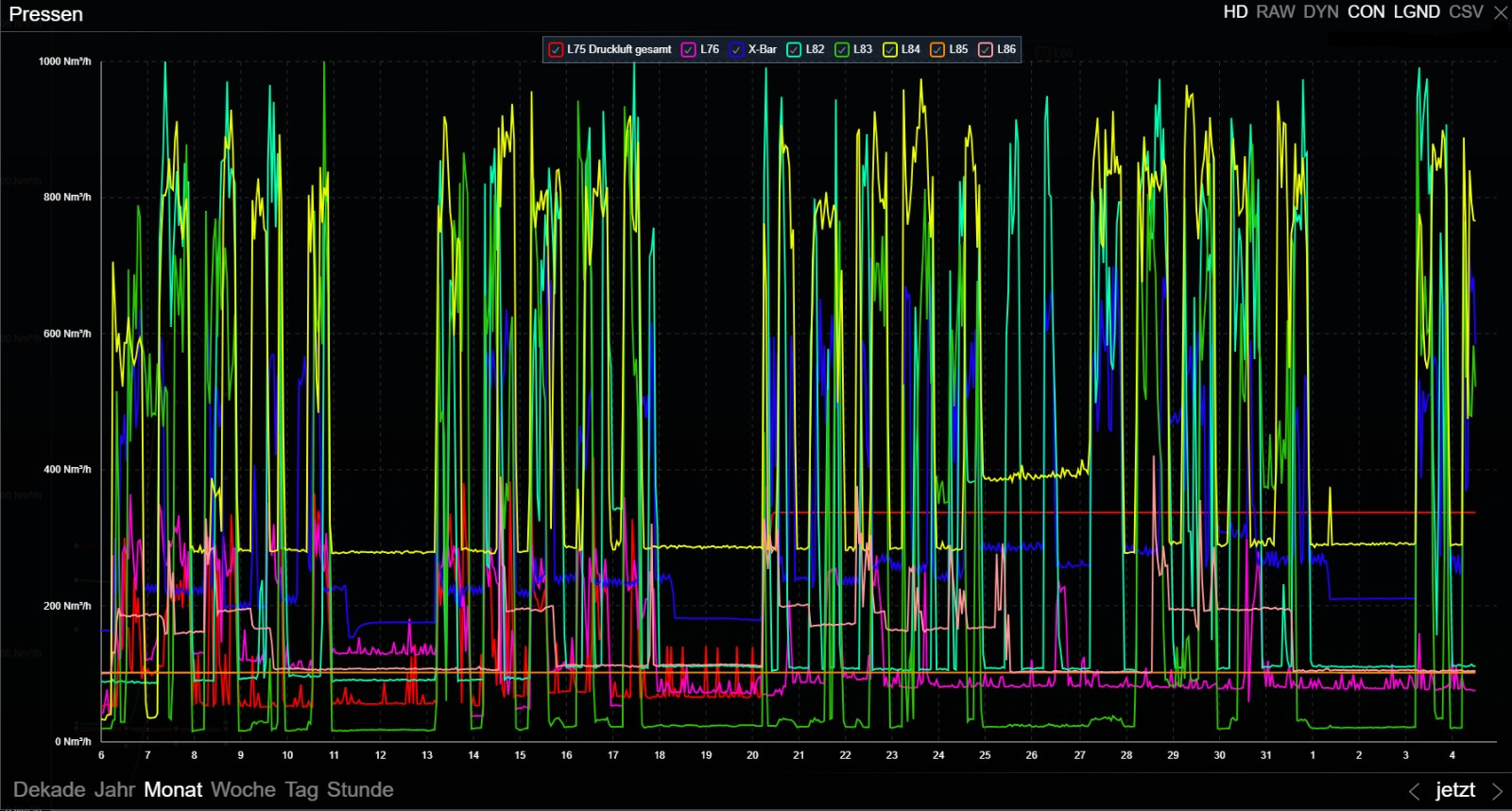 In general terms, the aim was to save energy and to record and identify possible leaks or unnecessary energy consumption. This also involved measuring temperatures, detecting compressed air leaks and recording ink levels in the machines, for example. In other words, comprehensive energy monitoring. Although data had been recorded, it was poorly visualized and had no context.