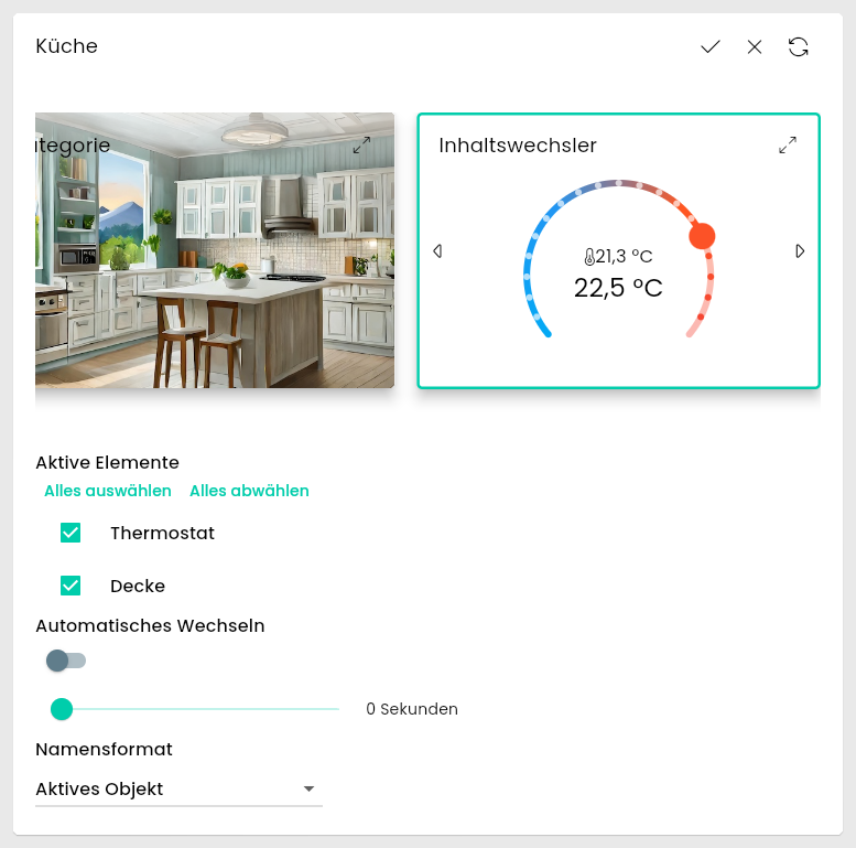 | Automatic Change | If active, the content changer jumps to the next element after a specified duration. The maximum duration is 100 seconds. |