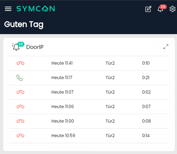 - When the doorbell rings, "sip:symcon_12345@192.168.1.5:5060" must then be called, for example