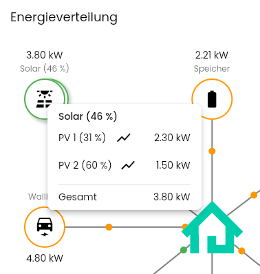 The energy distribution provides an overview of the energy generated/consumed and fed in/referred.
