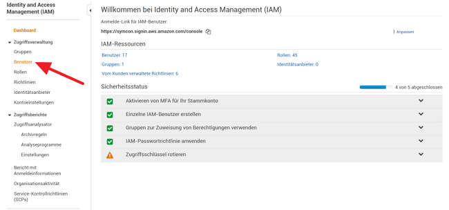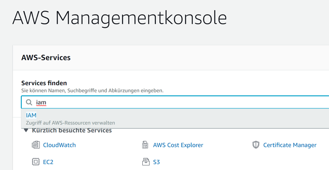 Within the IAM a new user has to be added